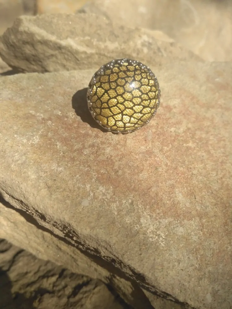 Kulatý prsten zdobený krásným kabošonem o průměru 25mm. Nastavitelná velikost