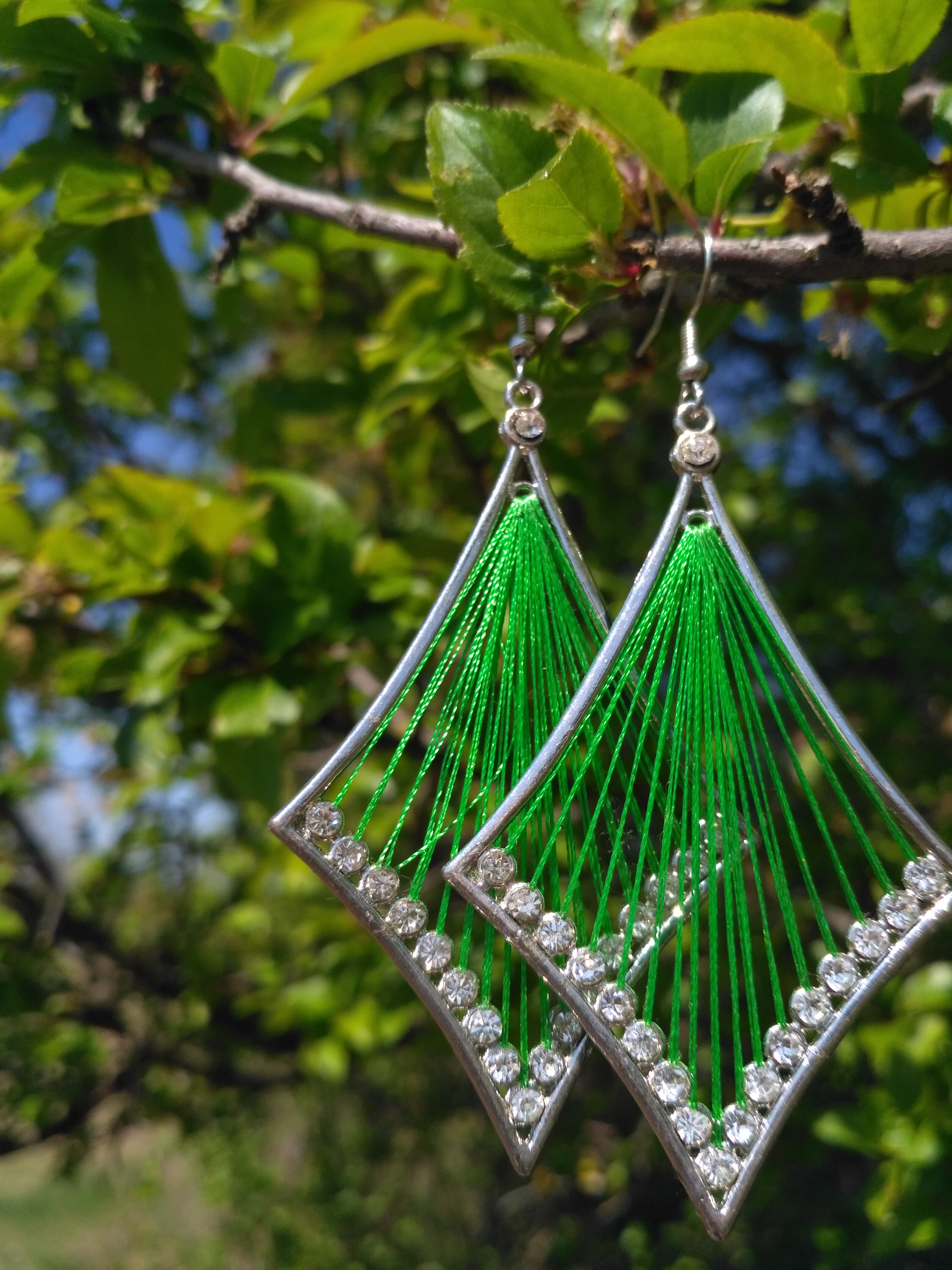 Krásné, zelené náušnice zdobené kamínky