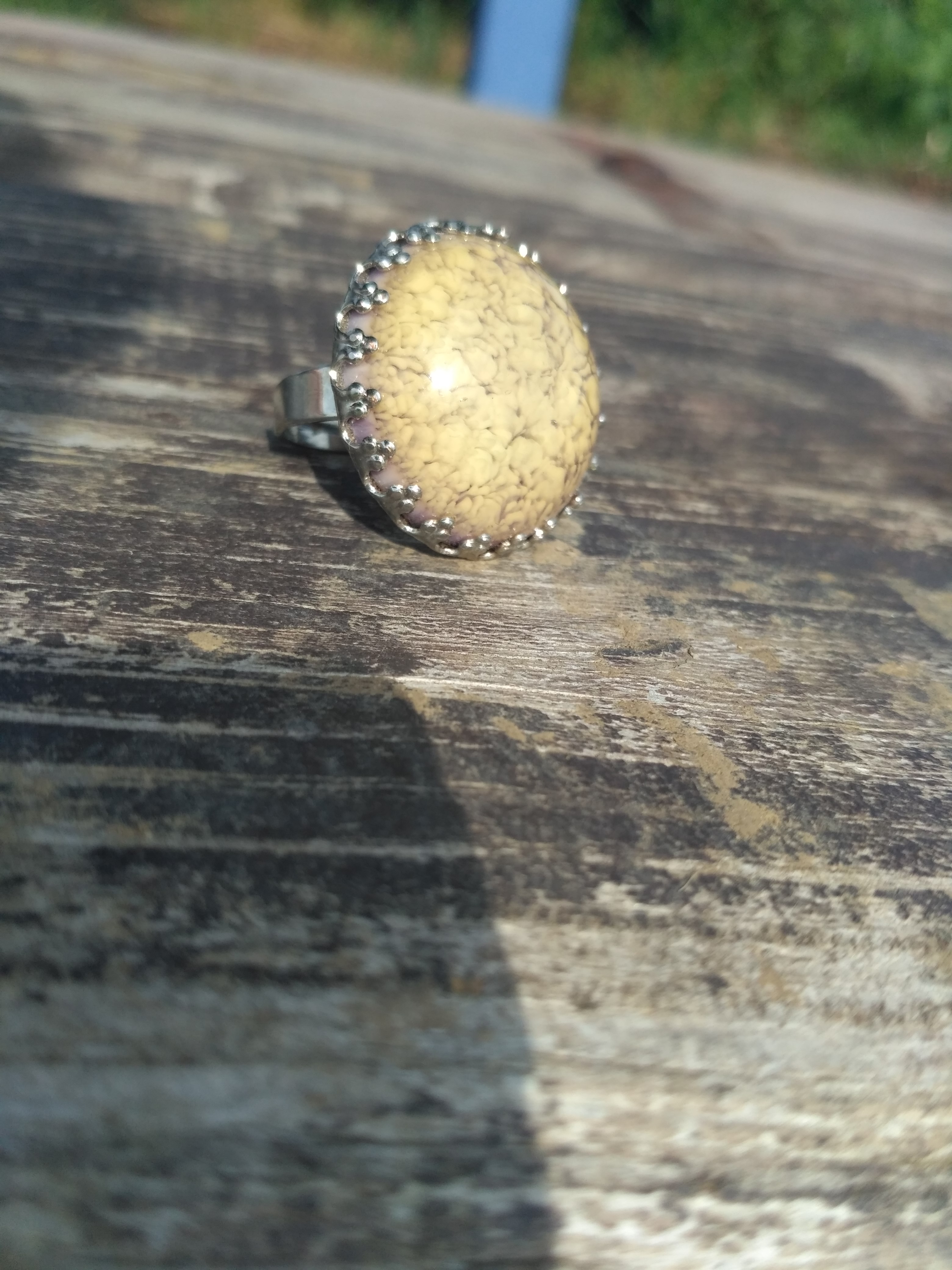 Kulatý prsten zdobený krásným kabošonem o průměru 25mm. Nastavitelná velikost.